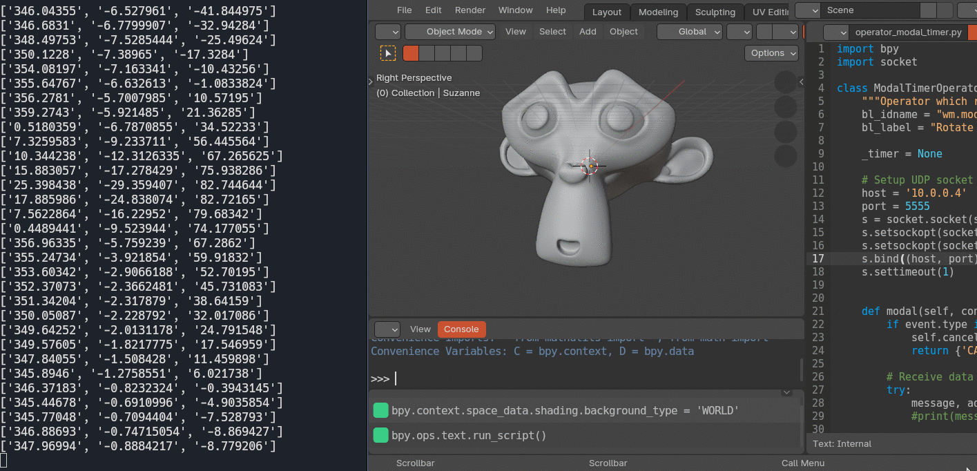 Now just run the script and if everything is Ok you will see Suzanne rotating!