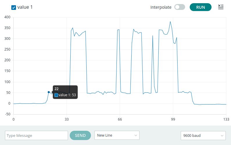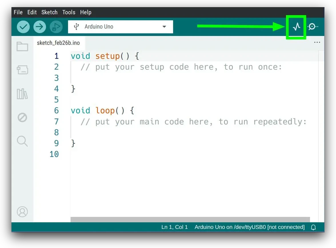 Para poder ver los datos que nos envía el Arduino podemos utilizar el Serial Plotter, haciendo click en el botón de la gráfica que tenemos arriba a la derecha: