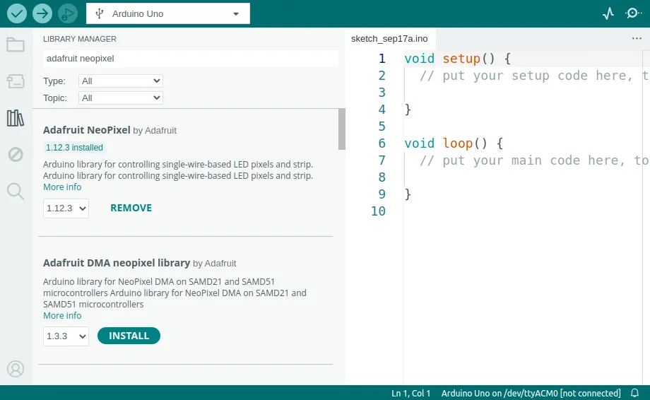 Instalar la librería Neopixel