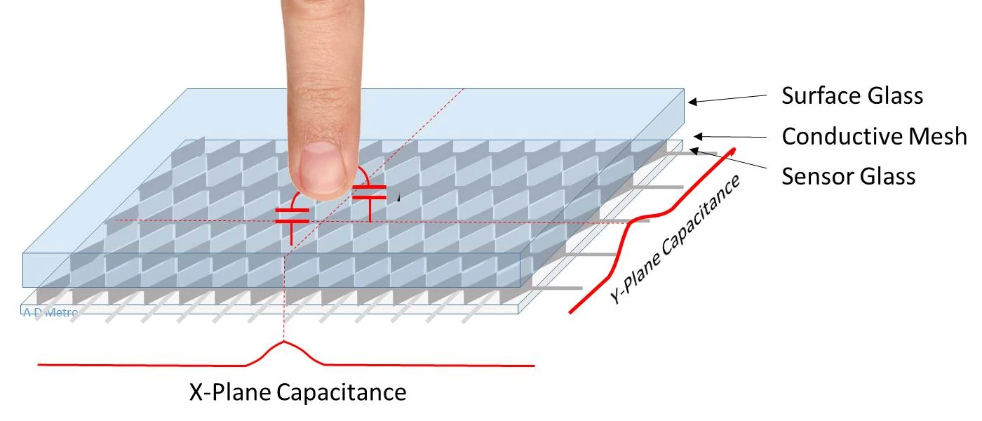 Really complete explanation on capacitive touch screen sensing in this Tufts University youtube video